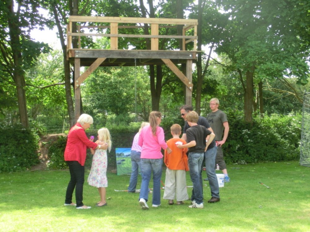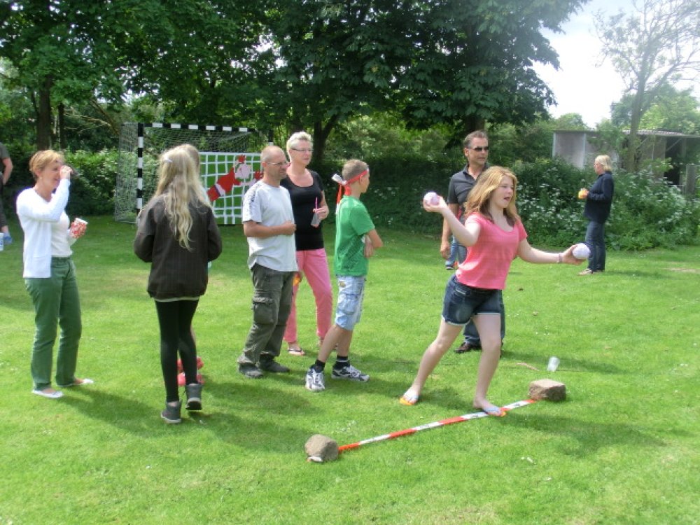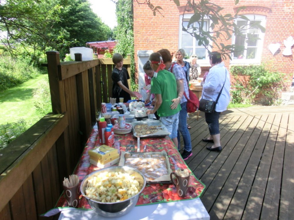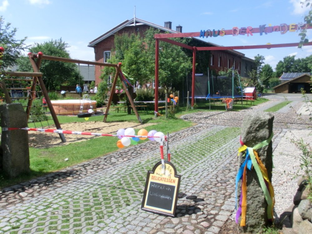 Mit einem Sommerfest vor den großen Ferien feierte das Haus der Kinder das 15 jährige Bestehen des Kinderheimes. Wie die Zeit verflogen ist! Mittelpunkt des bunten Nachmittags war eine riesengrpße Hüpfburg. Dazu wurden Spiele wie Dosenwerfen, Golf-Zielschießen, Glücksrad, Reiten und Torwandschießen angeboten. Zahlreiche Eltern hatten Kuchen und Torten mitgebracht, so dass das Buffet noch größer und reichhaltiger wurde. Selbst ein zwischenzeitlicher Schauer konnte der Stimmung keinen Abbruch tun. Schnell waren die helfenden Hände von Erziehern, Kindern und Jugendlichen, Lehrern, Freunden zur Seite, um Tische und Bänke ins Carport zu schaffen. Dort konnte dann für die 40 Gäste ungestört vom Wetter gegrillt werden. Nach kurzer Zeit zeigte sich die Sonne wieder und begleitete das Fest bis in die Abendstunden.