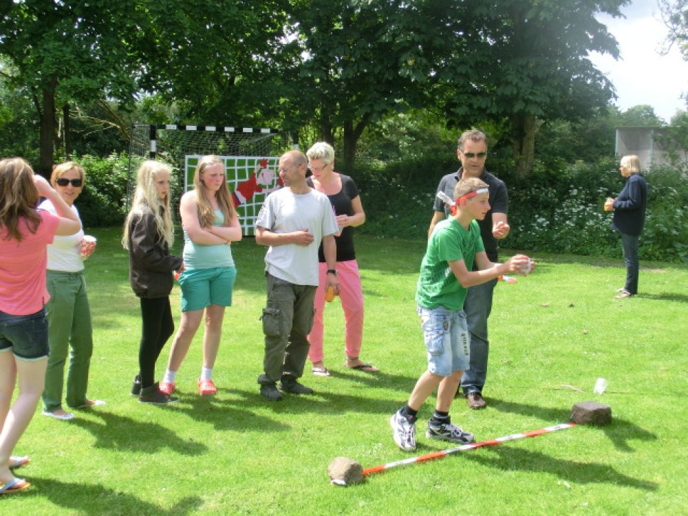 Mit einem Sommerfest vor den großen Ferien feierte das Haus der Kinder das 15 jährige Bestehen des Kinderheimes. Wie die Zeit verflogen ist! Mittelpunkt des bunten Nachmittags war eine riesengrpße Hüpfburg. Dazu wurden Spiele wie Dosenwerfen, Golf-Zielschießen, Glücksrad, Reiten und Torwandschießen angeboten. Zahlreiche Eltern hatten Kuchen und Torten mitgebracht, so dass das Buffet noch größer und reichhaltiger wurde. Selbst ein zwischenzeitlicher Schauer konnte der Stimmung keinen Abbruch tun. Schnell waren die helfenden Hände von Erziehern, Kindern und Jugendlichen, Lehrern, Freunden zur Seite, um Tische und Bänke ins Carport zu schaffen. Dort konnte dann für die 40 Gäste ungestört vom Wetter gegrillt werden. Nach kurzer Zeit zeigte sich die Sonne wieder und begleitete das Fest bis in die Abendstunden.